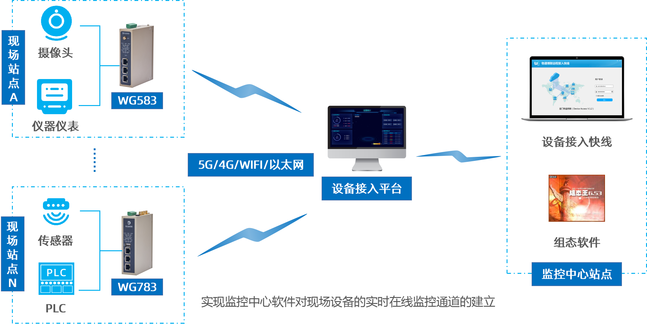 顺利获得专有的网络技术实现设备的通道定义和标准化,降低配置及运维难度,支持项目及站点多级权限管控和状态诊断等。