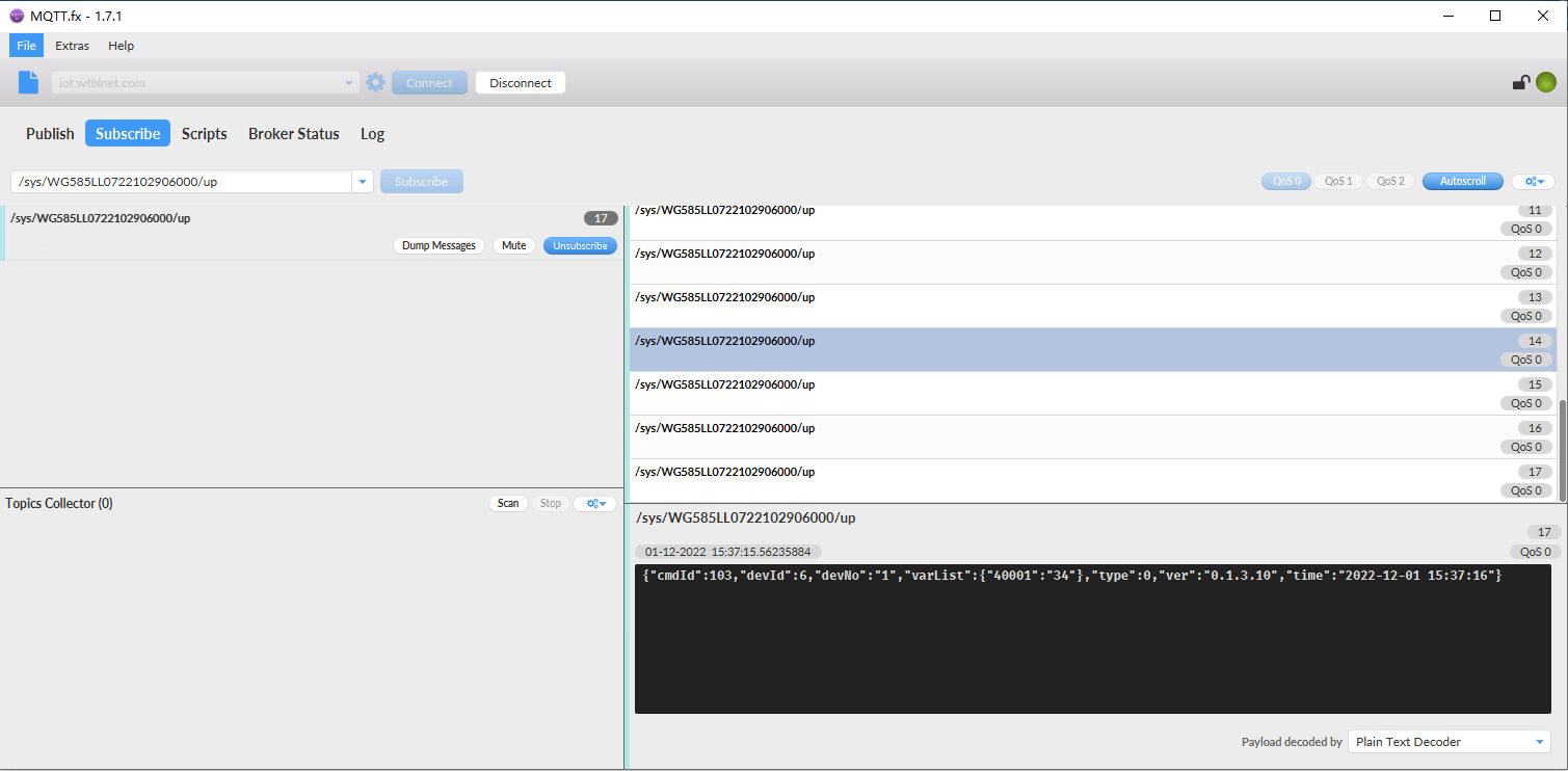(6)顺利获得MQTT客户端软件测试网关指令,解析开发模型。