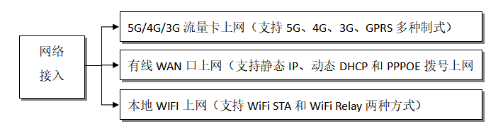 将网关设备上的LAN口与电脑端网口相连接,电脑与网关要同网段。登录网关界面配置网络,用户可以选择其中一种进行联网并且有且只能开启一种上网方式。