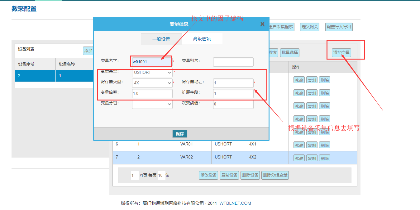 添加变量:变量名称对应212报文中的监测因子编码,最后记得重启采集程序才能生效配置。
