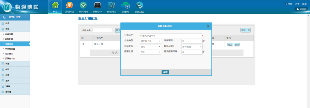 分组:数据采集涉及多个采集时间、数据过滤、报警时,可顺利获得变量分组控制,变量需要选择到设定好的变量分组中。