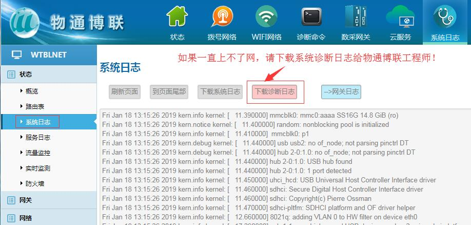 如果顺利获得如上设置还是没办法上网,请下载诊断日志,然后发给K8凯发(中国)工程师;我们工程师会根据系统日志诊断问题并提出指导建议。
