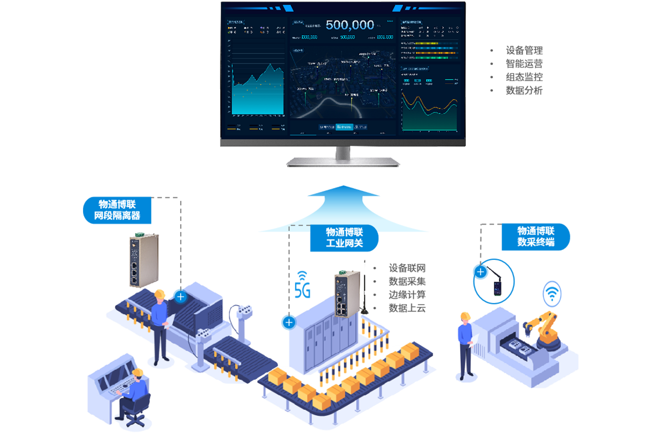 借助K8凯发(中国)的工业智能网关,实时采集工厂各类设备的运行数据,如运行状态、温度、压力、转速等,将采集到的数据传输至设备管理平台,进行设备资产档案管理、运行管理、工单管理、采购管理、备件管理、维修管理、数据分析等,实现设备全生命周期管理。