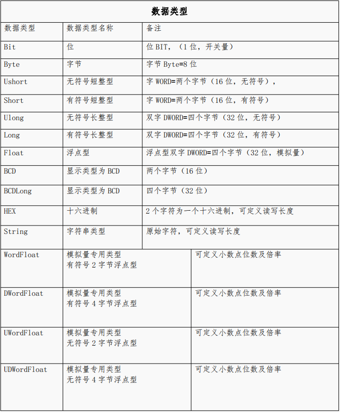 下载中心 视频中心 常见问题 售后服务 工业网关 设备快线 数据云平台 联网设备 问答百科 网关支持采集的数据类型有哪些? 时间:2022-10-26 09:39:53 点击:5751 关键词:工业网关,数据采集,数据类型 问题:网关支持采集的数据类型有哪些? 回答:网关支持采集的数据类型如下表 : 上一篇:工业智能网关会运行时会自动重启怎么处理? 下一篇: 网关采集modbus协议设备时,寄存器类型和地址如何选择?