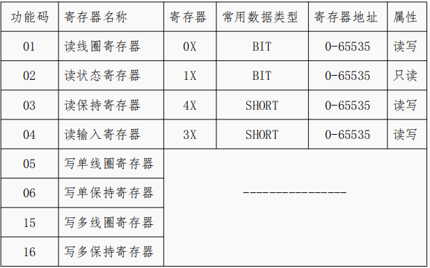 下载中心 视频中心 常见问题 售后服务 工业网关 设备快线 数据云平台 联网设备 问答百科 网关采集modbus协议设备时,寄存器类型和地址如何选择? 时间:2022-10-26 09:39:53 点击:6414 关键词:工业网关,数据采集,modbus,寄存器 问题:网关采集modbus协议设备时,寄存器类型和地址如何选择? 回答: (1)ModBus 功能码与网关寄存器类型对应关系 (2)偏移地址 以仪器仪表为例,Decimal为十进制地址,Hex为十六进制地址 网关仅支持十进制的偏移地址,十六进制需转换十进制 (2)采集演示 如设备支持modbus 协议03功能码,偏移地址表如(2),则网关配置如下 上一篇:网关支持采集的数据类型有哪些? 下一篇: 网关需要将数据上报到K8凯发(中国)云平台需要哪些配置?