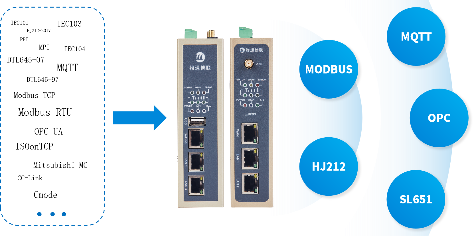 支持将各种协议如Modbus、OPC、PLC协议转换为HJ212协议