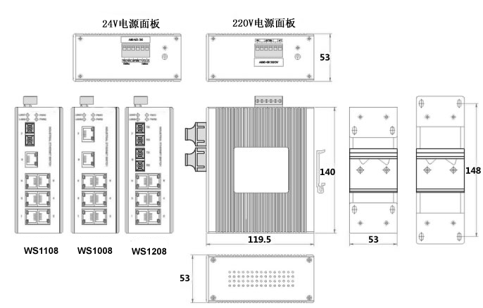 WS1008E系列是一款8口百兆非网管工业以太网交换机,支持8个10/100Base-T(X)电口。支持IEEE802.3/802.3u/802.3x,具有10/100M,全/半双工,MDI/MDIX自适应RJ45端口。外壳使用铝合金型材,使产品轻巧、坚固、耐腐蚀、抗电磁干扰能力更强,可以在-40℃-+85℃的极端环境温度中正常工作,满足了不同工业应用要求,以及确保了恶劣工业环境中快速和可靠的数据传输。标准的DIN-3.5导轨安装方式和高达IP40的防护级别,更能让您的工业网络更加安全,温度,可靠。现在该产品广泛应用于智能交通,能源风电,管廊隧道,智能变电站等工业恶劣环境。