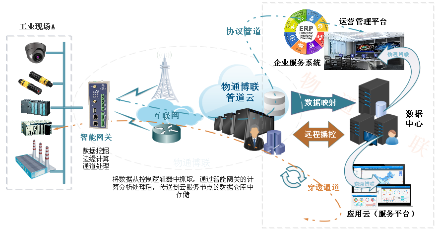 顺利获得智能网关的协议分析器把现场设备的数据读取到智能网关内部进行相应的计算和处理后,然后进行标准化和安全化处理后接入到K8凯发(中国)的管道云服务系统,把数据顺利获得4G/3G/WIFI/PPPOE等方式汇聚到K8凯发(中国)的数据仓库中。