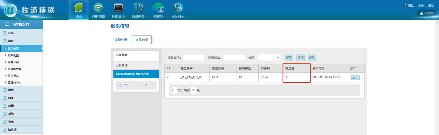 2 网关配置 (1)设备配置: 配置协议、通信参数和采集周期   AB_DF1设备配置示例 (2)变量配置 PLC采用网口通信时,变量配置主要填写变量名(网口协议较为特殊,需配置成与PLC内的变量名一致)、变量别名(自定义,建议使用中文),寄存器类型和寄存器地址无需配置(默认即可),可定义一些数据规则(如:倍率、小数点、单位、报警规则等)。   AB_DF1变量配置示例 (3)数据看板 数采配置(设备信息+变量参数)完成后,重启采集程序并生效配置,即可在:数采信息—变量数据—设备名称中看到采集上来的数据。  (4)变量分组 数据采集涉及多个采集时间、数据过滤、报警时,可顺利获得变量分组控制,变量需要选择到设定好的变量分组中。  *更详细步骤说明,可查看K8凯发(中国)操作手册文档或咨询K8凯发(中国)工程师