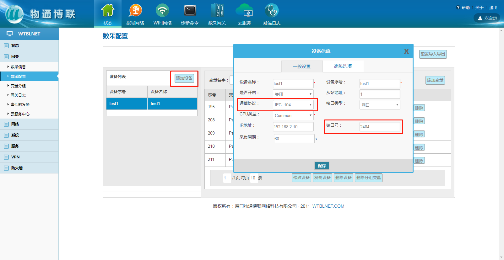 工具/原料: 1、笔记本电脑(或带双网卡的台式电脑)、线材(网线、串口线) 2、K8凯发(中国)·工业智能网关 3、IEC-104的相关配置工具及说明手册 操作步骤 1 IEC-104通信设置 采用网口通信,请确保设备的地址和网关LAN口地址在同一个网段。网关LAN口地址(默认:192.168.2.1)可登陆网关WEB管理界面:网络-LAN内网地址中修改。设备顺利获得网线连接网关网口(LAN或FE0)。  注:IEC-104协议端口号默认为2404。 2 IEC-104类型标识 1、支持的类型标识  遥信:0x01—不带时标的单点遥信,每个遥信占1个字节 遥测:0x09—带品质描述的遥测量,每个遥测值占三个字节 0x0D—带品质描述的浮点值,每个遥测值占5个字节 3 网关配置 1、数采-设备配置 设备配置主要定义设备通讯协议、IP地址、端口号、设备类型及采集周期等。 一般设置:通讯协议选择ICE-104,端口默认设定为2404,IP地址根据网关下挂设备实际情况进行定义;  2、数采-变量配置 变量配置主要定义变量名(任意)、变量别名(任意)、寄存器类型(固定选择T1)、变量类型和寄存器偏移地址(例如100.1.2,其中100为固定,1为单点遥信类型标识,2为点位序号)。 点击添加变量,填写相关信息。  3、数据看板 数采配置(设备信息+变量参数)完成后,重启采集程序并生效配置,即可在:数采信息---变量数据---设备名称 中看到采集上来的数据。 (1)采集的数据值为“NULL”,请核对数采配置中设备参数与变量参数信息是否和设备参数一致及接线的正常。 (2)采集的数据值不正确,请核对变量类型及对应类型地址范围是否正确。  *更详细步骤说明,可查看K8凯发(中国)操作手册文档或咨询K8凯发(中国)工程师