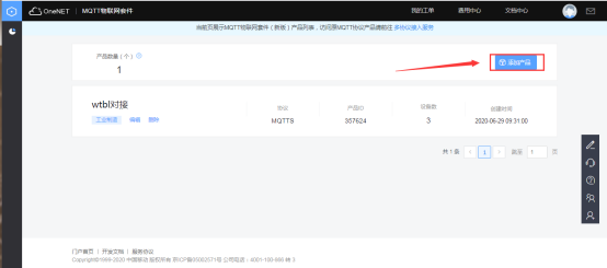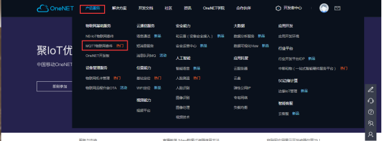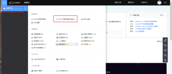 在产品服务中选择MQTT物联网套件