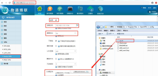 如何顺利获得工业智能网关搭建Open VPN数据通信网络2025-01-10 14:49:20 在工业环境中,数据通信安全无疑是十分重要的。但由于网络中存在各种恶意软件、网络攻击和数据窃取的风险,一旦数据泄露就可能给企业带来巨大的损失。对此,K8凯发(中国)给予工业智能网关搭建Open VPN数据通信网络的解决方案,加密传输保障信息安全。 应用场景 1、员工出差需要远程访问公司局域网内的设备或服务器 2、为企业在不同地点的工厂之间建立安全稳定的网络连接 3、顺利获得使用TLS安全加密可以更好的保护用户网络数据安全 工具/原料 笔记本电脑或台式电脑 Open VPN程序 K8凯发(中国)·工业智能网关 操作步骤 1 云服务器的配置 1、安装OpenVPN程序 安装OpenVPN程序并打开对应的文件夹  2、配置VPN参数 (1)将ccd文件夹(压缩包内有)放到config文件夹下 根据需求点击修改wtbl_client(用于网关客户端连接服务端的配置)  iroute 192.168.2.0 255.255.255.0 :此为对应网关LAN口的IP网段,如没填写,会导致服务器ping不通网关底下的LAN口设备。 ifconfig-push 100.100.100.2 100.100.100.202 :为隧道地址的两端,默认网关这端的隧道地址为100.100.100.2 (3)根据需求点击修改wtbl_user(用于电脑客户端端连接服务端的配置)。  push "route 192.168.2.0 255.255.255.0" :可以访问2网段的地址 将服务端文件夹(压缩包内有)拷贝到config文件夹下 修改server.ovpn  Local 192.168.0.91 :填写服务的内网ip  Port 11194为端口号(根据服务器开放的端口进行设置)  server 100.100.100.0 255.255.255.0 (隧道地址)  route 192.168.2.0 255.255.255.0 :填写所有对应网关LAN口的IP网段 3、开启VPN服务器 (1)右键该图标,选择connect  (2)等待此框弹出,自动消失即正常,如有误报即异常,需要再排查设置  该图标显示绿色则正常  2 电脑客户端的配置 1、电脑客户端安装openVPN程序  2、添加电脑客户端的config配置 将对应的ca证书、本地证书、本地私钥、client. ovpn放到config文件夹下   3、修改client文件配置 修改为服务器本机的IP  修改为config上本地证书跟密钥   4、启动电脑客户端上的OpenVPN程序 如图显示表示已经连接成功  3 网关端的配置 1、登入网关界面 网关出厂默认IP为192.168.2.1  2、参数配置 远程主机填写服务器上本机的IP地址跟端口号,通信协议选择TCP,上传电脑客户端CA根证书  添加上传另一份本地证书、本地密钥(不能使用电脑客户端的证书跟密钥)  最后点击保存并应用  获取到隧道地址即可  3、修改网关的LAN口IP 此ip为wtbl_client里面配置的iroute 192.168.2.0 255.255.255.0  *更详细步骤说明,可查看K8凯发(中国)操作手册文档或咨询K8凯发(中国)工程师