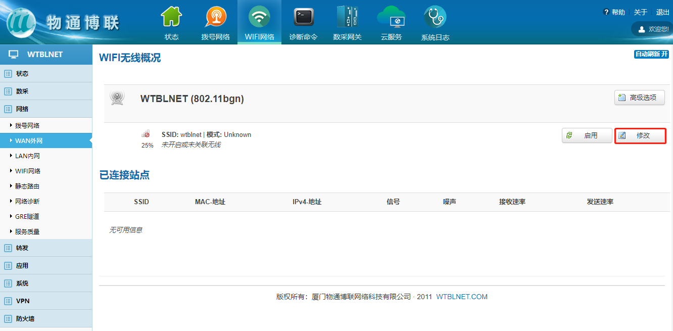 (3)点击WiFi界面修改—进入WiFi配置界面