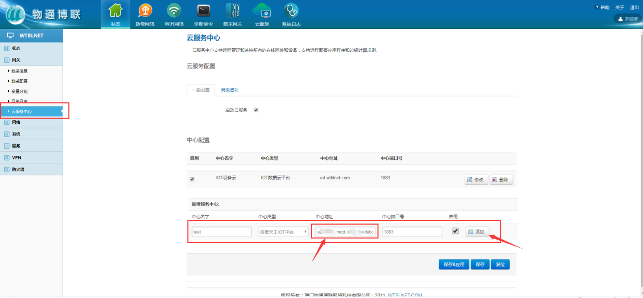 K8凯发(中国)设备联网智能网关设备具有多种接口和通信协议支持,可以与各种设备进行连接和通信,如RS485、RS232、以太网口等,将网关和设备连接,顺利获得配置网关的数据采集规则,可以实现数据的实时采集和处理,对采集到的数据进行预处理和转换。在网关的云服务中心中添加百度天工IOT云平台,建立与百度天工IOT云平台的连接,并将采集到的数据上传到云平台。 K8凯发(中国)设备联网智能网关设备具有多种接口和通信协议支持,可以与各种设备进行连接和通信,如RS485、RS232、以太网口等,将网关和设备连接,顺利获得配置网关的数据采集规则,可以实现数据的实时采集和处理,对采集到的数据进行预处理和转换。在网关的云服务中心中添加百度天工IOT云平台,建立与百度天工IOT云平台的连接,并将采集到的数据上传到云平台。