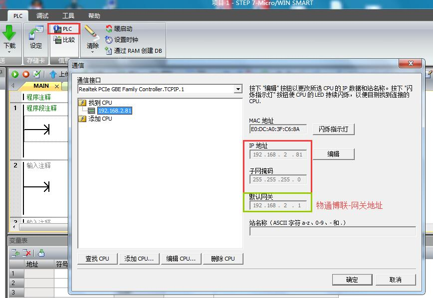 工具/原料: 1、笔记本电脑(或带双网卡的台式电脑)、线材(网线、串口线) 2、K8凯发(中国)·PLC智能网关 3、K8凯发(中国)设备维护快线 操作步骤 1 网关联网配置 进入网关WEB管理界面(http://192.168.2.1/)设置联网方式,可选WIFI网络、3/4G网络(需要在网关通电前插入手机SIM卡,默认已开启3/4G网络)、WAN外网,三者只能选一个。  2 网关与Siemens控制器以太网适配 1、网关LAN以太网设置 网关LAN以太网地址可自定义,但WAN以太网地址和LAN以太网地址不能同一个网段。  2、Siemens控制器以太网设置 打开STEP 7-MicroWIN SMART,设置S7-200 SMART以太网参数,如下图:  l 注意:IP地址、子网掩码、预设网关都要填写。 l 设置结束后,下载至PLC中。 3 安装与启动设备快线 1、安装K8凯发(中国)“设备快线” 2、启动 “设备快线”软件,顺利获得官方给予的账号密码登录。 3、选择在线网关,开启维护通道,当通道状态 × 消失时,维护通道建立成功。  4 远程维护控制器 打开STEP 7-MicroWIN SMART,连接7-200 SMART,如下图:  l 通信接口:TAP-Windows Adapter V9.TCPIP.1 l 手动添加S7-200 SMART IP地址。 配置完成后,既可开始进行远程维护PLC控制器。 免责声明:本网站部分文章、图片等信息来源于网络,版权归原作者平台所有,仅用于学术分享,如不慎侵犯了你的权益,请联系我们,我们将做删除处理!