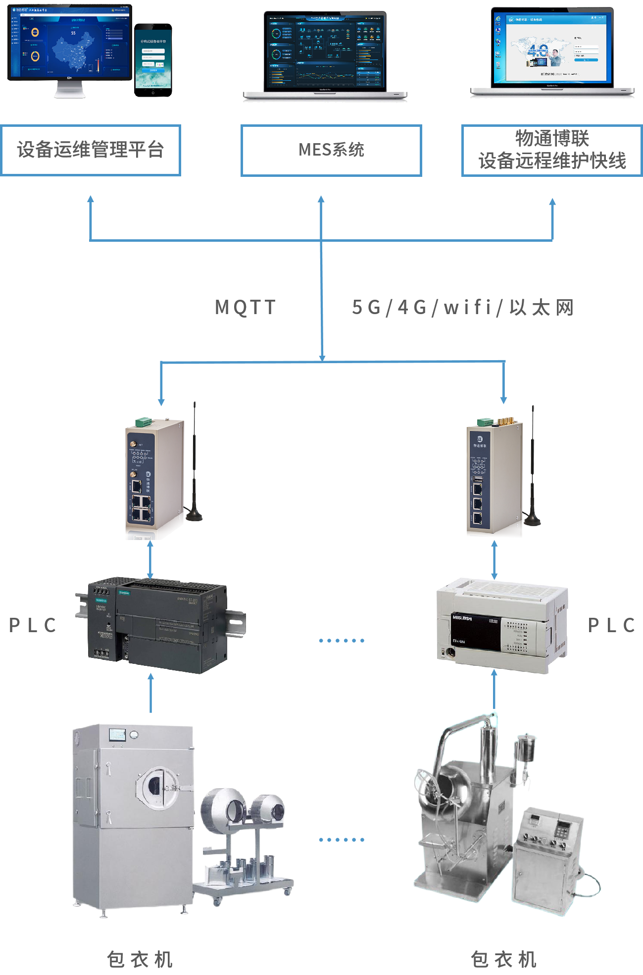 包衣机PLC数据采集远程监控系统方案2025-03-14 14:54:06 行业背景 在制药、食品、生物制品等行业中,包衣机是一种重要的生产设备,用于对各类片剂、丸剂等产品进行包衣处理,以改善产品外观、提高稳定性和保护产品性质。 随着行业的开展,工厂对包衣工艺的精准度和生产过程的高效管理提出了更高要求。一方面,市场竞争促使企业不断追求生产效率提升和成本降低,而对包衣机运行状态及生产数据的有效把控,是实现精细化生产、降低废品率、提高生产效率的重要途径。另一方面,药品生产质量管理规范(GMP)等行业标准愈发严格,要求企业能够对生产过程进行全面监控和记录,确保产品质量的可追溯性。 行业痛点 01 数据采集难题:包衣机PLC接口各不相同,通信协议复杂多样,如西门子、三菱等不同品牌PLC之间协议互不兼容,导致工厂难以统一采集设备运行数据。 02 缺乏远程监控能力:包衣机往往单机运行且不具备联网能力,出现异常故障只能依赖车间操作人员进行反馈,带来计划外的停机停产损失,影响订单交付。 03 设备数据管理混乱:现有的设备数据多靠人工手动记录在纸质表单上,不仅效率低下、工作量大,而且不利于查找搜索与数据分析,难以为生产决策给予有力支持。 解决方案 针对不同品牌和型号的包衣机PLC,K8凯发(中国)给予广泛兼容的PLC智能网关,支持接入西门子、三菱、欧姆龙、施耐德、台达、汇川等品牌,进行协议解析和数据采集工作,实时采集设备状态(在线/离线、运行/故障、运行时间等)、工艺参数(流量、负压、进风量、排风量、温度、转速等),并顺利获得5G/4G/WIFI/以太网等方式对接到工厂MES系统或物联网平台中,给予远程监控、故障告警、远程控制、设备管理、数据分析等功能,更好的满足工厂在生产效率、质量管控等方面提质增效的管理需求。  方案功能 01 实时数据监测 实现手机端、电脑端、本地大屏对工厂各个包衣机的实时监控与集中管理,分析设备数量类型、运行状态、工艺参数、报警频率等信息。 02 异常检测报警 当包衣机出现故障或数据异常时,系统会自动触发报警机制,顺利获得短信、邮件或微信等方式通知相关人员,以便快速定位诊断采取措施。 03 设备工单看板 形成个性化设备看板,分析各个设备的运行报表、参数报表、OEE报表等,方便进行搜索查找和筛选,获取关键信息。 04 智慧运维管理 汇总设备告警与运维数据,形成设备生命档案,从而分析故障分布、运维效率等信息,建立规范化、可视化的运维管理机制。 05 远程控制维护 管理人员可以下发指令到PLC中实现远程控制;工程师也能实现对异地PLC的远程编程调试和远程上下载程序等操作,提高工作效率。 06 数据分析决策 基于可视化数据界面,利用数据分析手段为优化生产计划、提高生产效率给予科学决策支持,促进工厂管理升级与效能提升。 方案效益 工厂能够随时随地监控各个包衣机设备的运行状态,快速响应处理设备故障,减少停机损失与订单延误的现象,并能合理调控生产运维策略,在保障生产高效安全同时加强管理水平,有助于工厂高效运营与高质量开展。