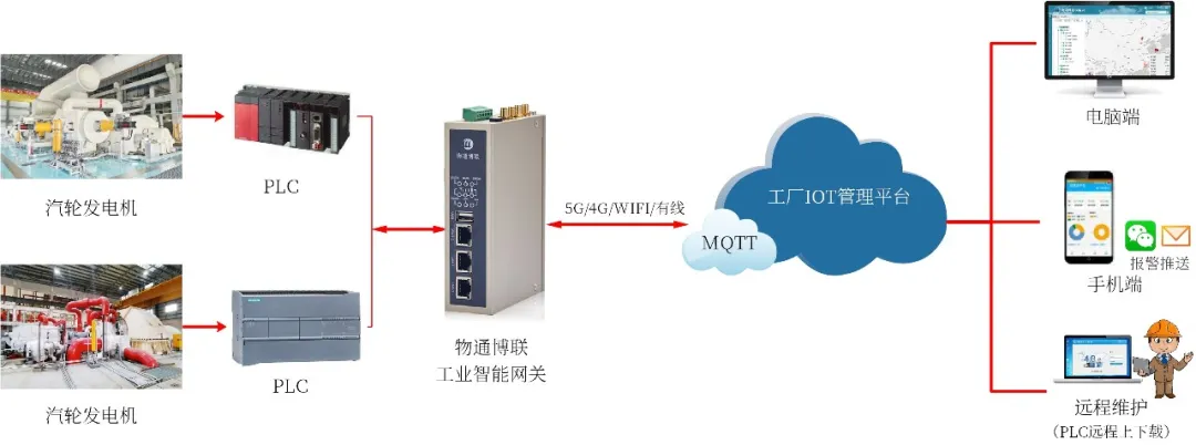 网关支持与PLC进行双向通信,管理人员能够下发指令实现PLC的远程控制,进行电机启停、阀门开关等操作,从而提高应急响应能力与管理水平,减少人工干预成本。